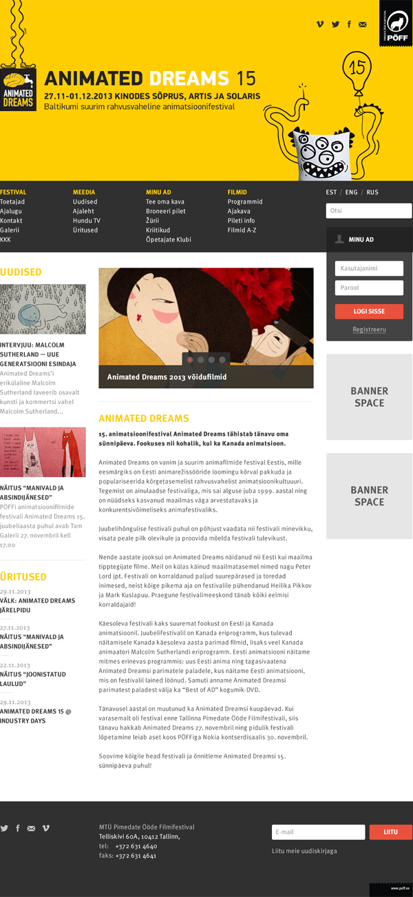 We created custom wordpress templates for the subfestivals of PÖFF (Dark Nights Film Festival). This example is for an animation festival called Animated Dreams. Illustrations: Martin Veisman
