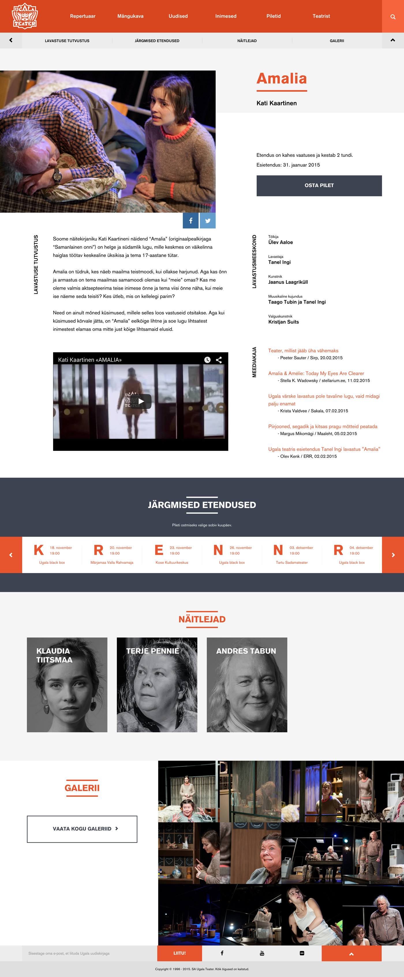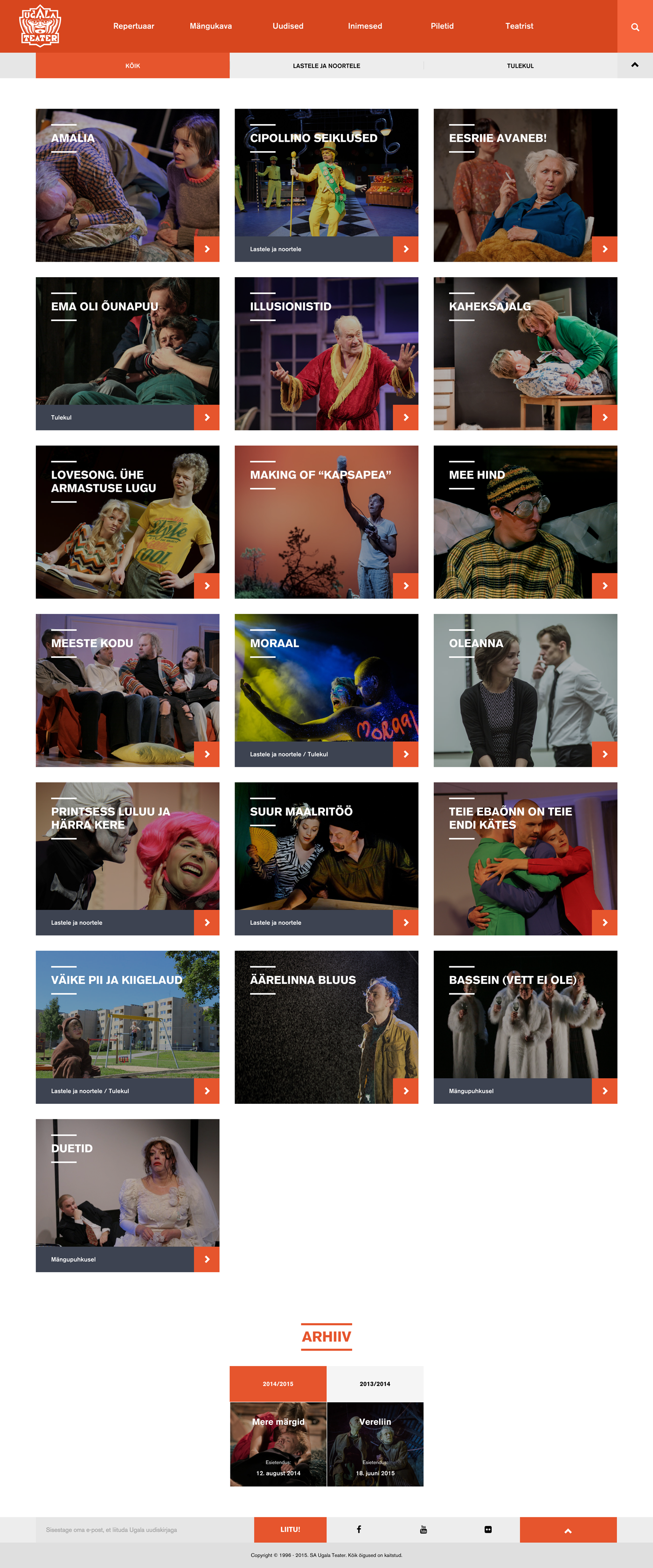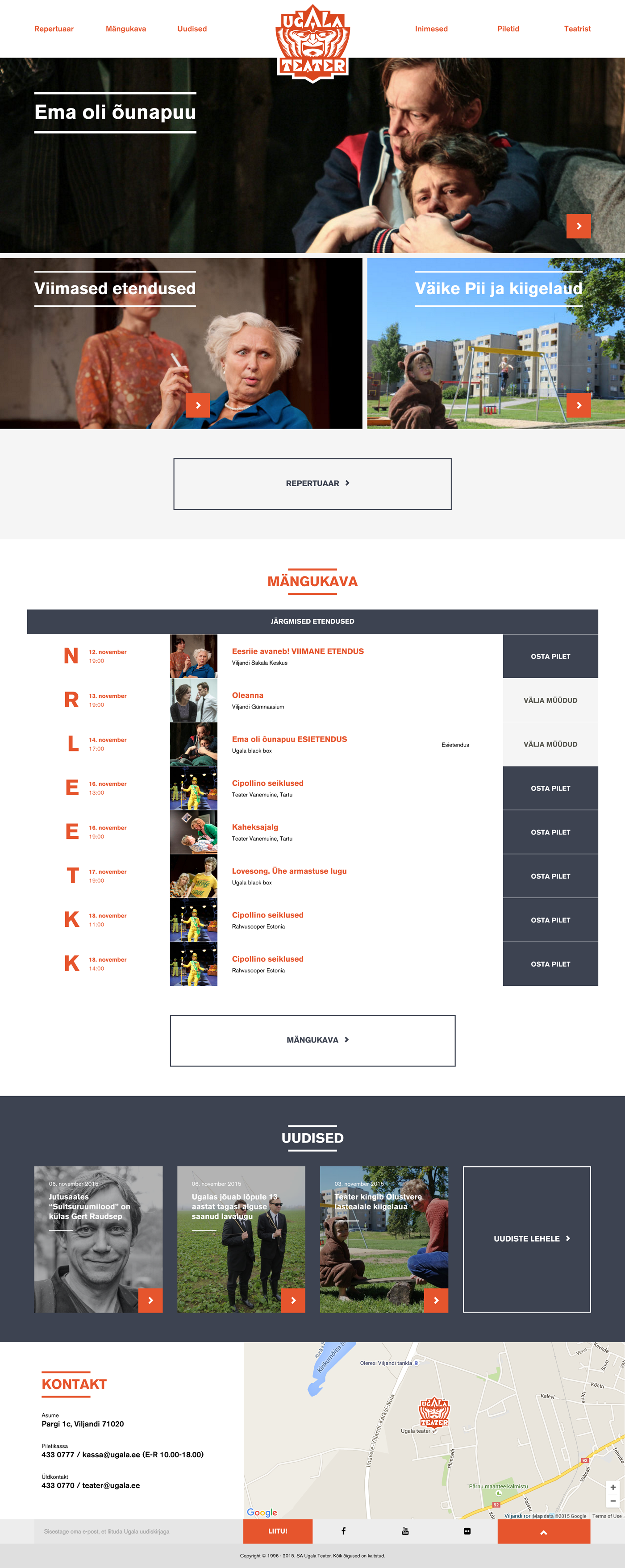 Ugala Theatre is one of the oldest professional theatres in Estonia, based in the city of Viljandi. We created the web and UI/UX design of the theatre's new website with the extremely diverse target audience in mind. The site is meant to be easily used for both young and old, experienced and not so experienced web users. Website is built on a Wordpress platform. It's fully responsive and ready to use in all of the main resolutions, screens and browsers. All in all a challenging, but also a very interesting project. http://www.ugala.ee